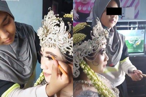 Ternyata, MUA yang masih bocah itu memang menyambi bersekolah sambil bekerja. Ia bekerja sebagai perias pengantin setiap pagi hari.